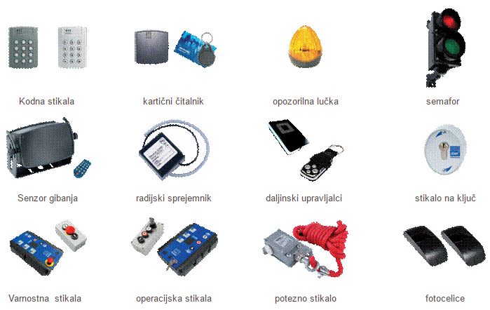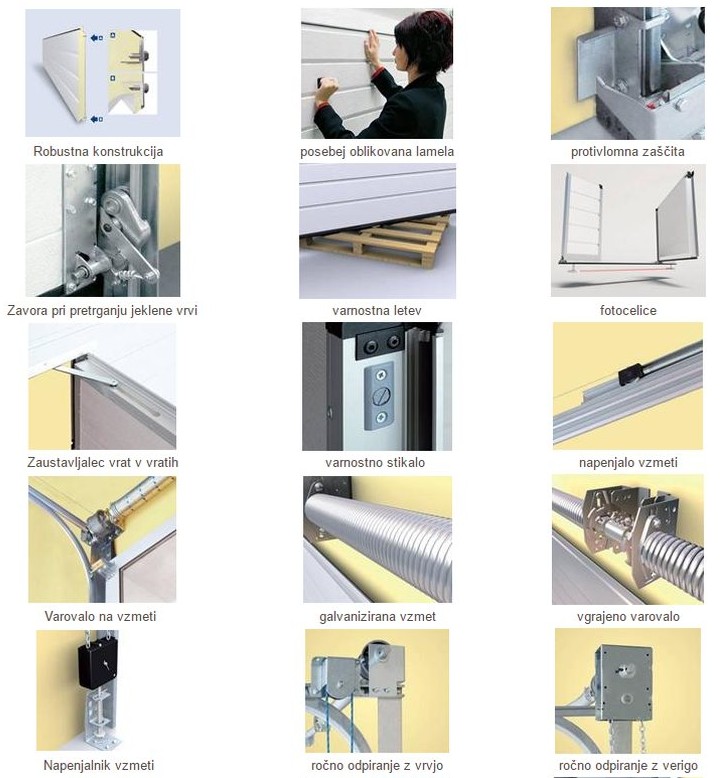 - odpiranje vrat: na verižni ali vrvni pogon, na motorni pogon